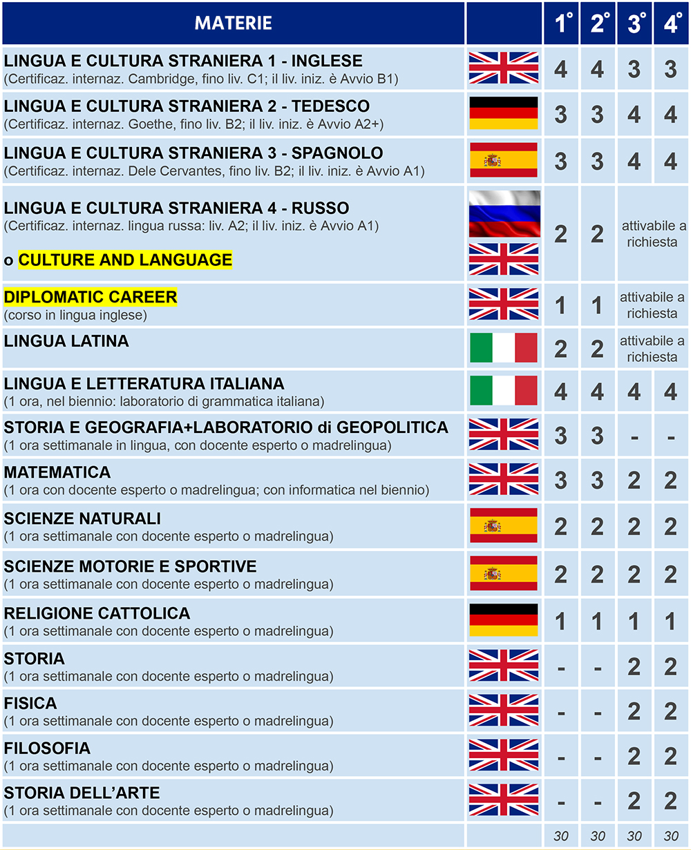 Liceo linguistico con “Progetto Europa” con durata di 4 anni, ha lo scopo di far conoscere il sistema linguistico di lingue e culture straniere.