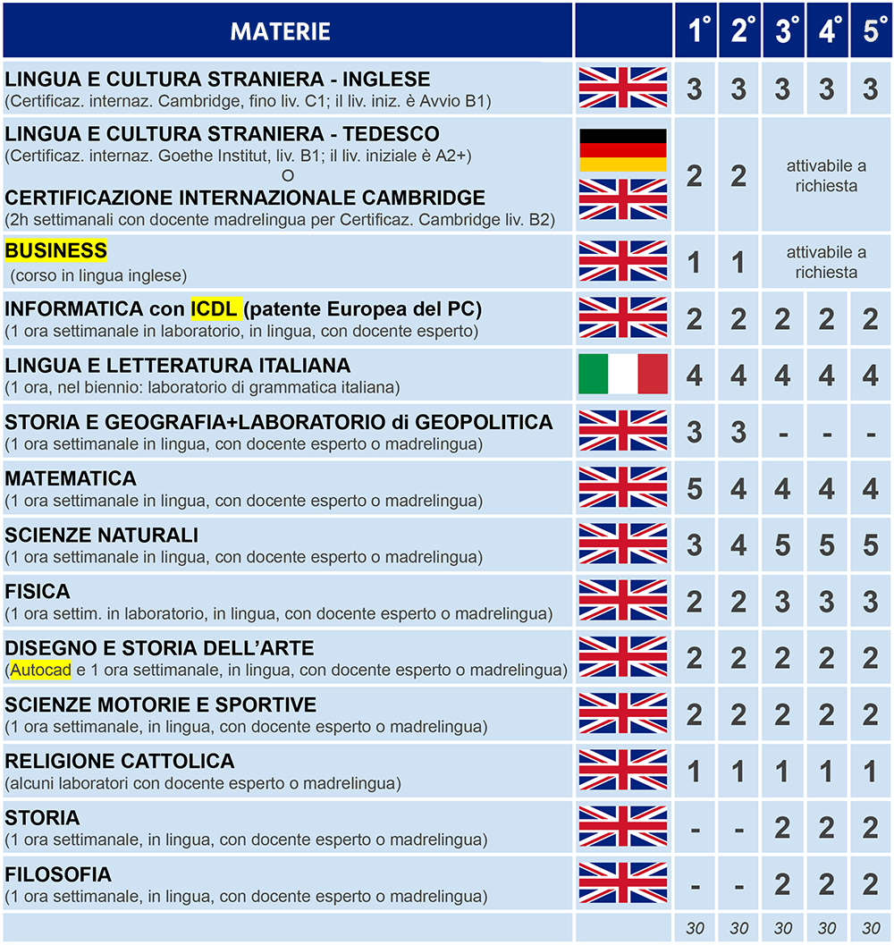 Tabella oraria lingua inglese e tedesca